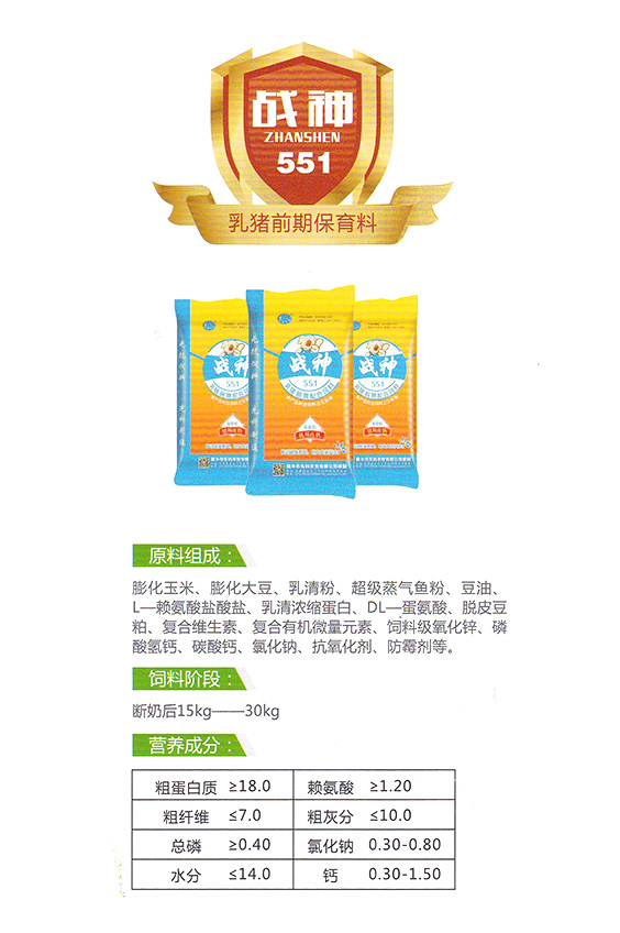 产品名:战神551乳猪前期保育料